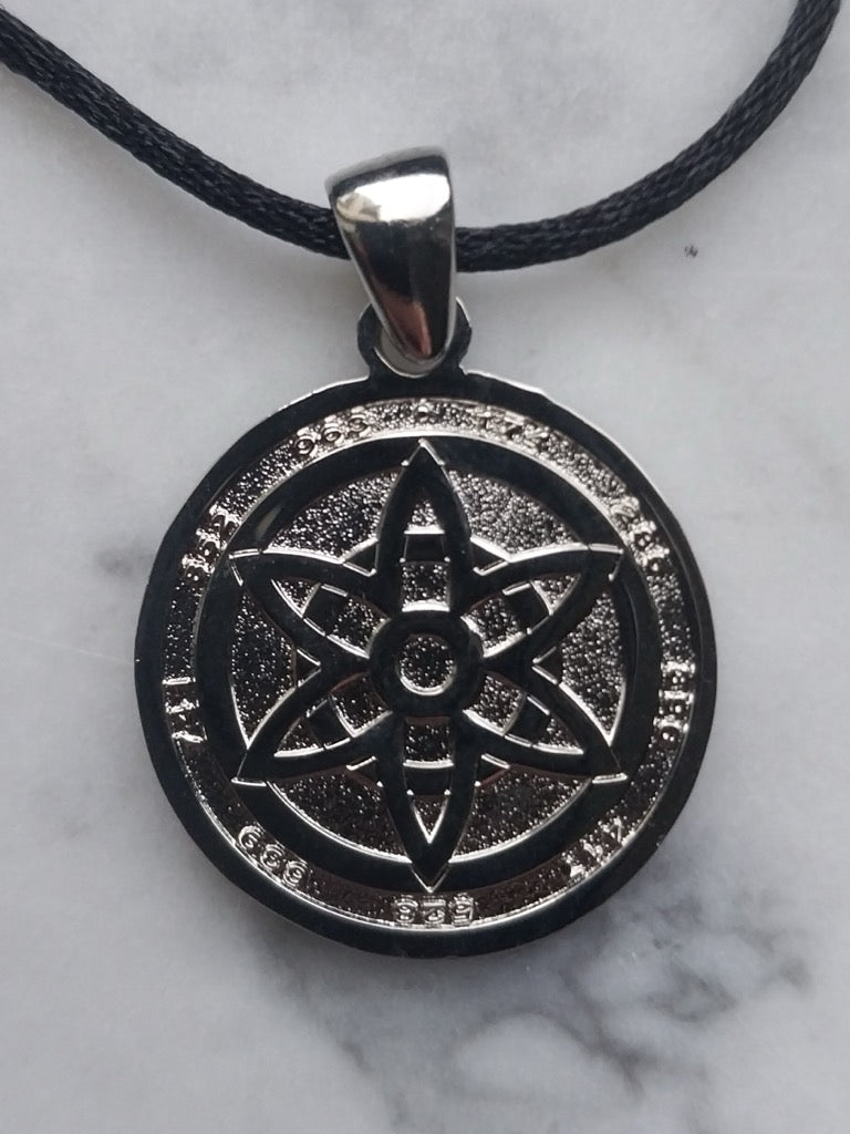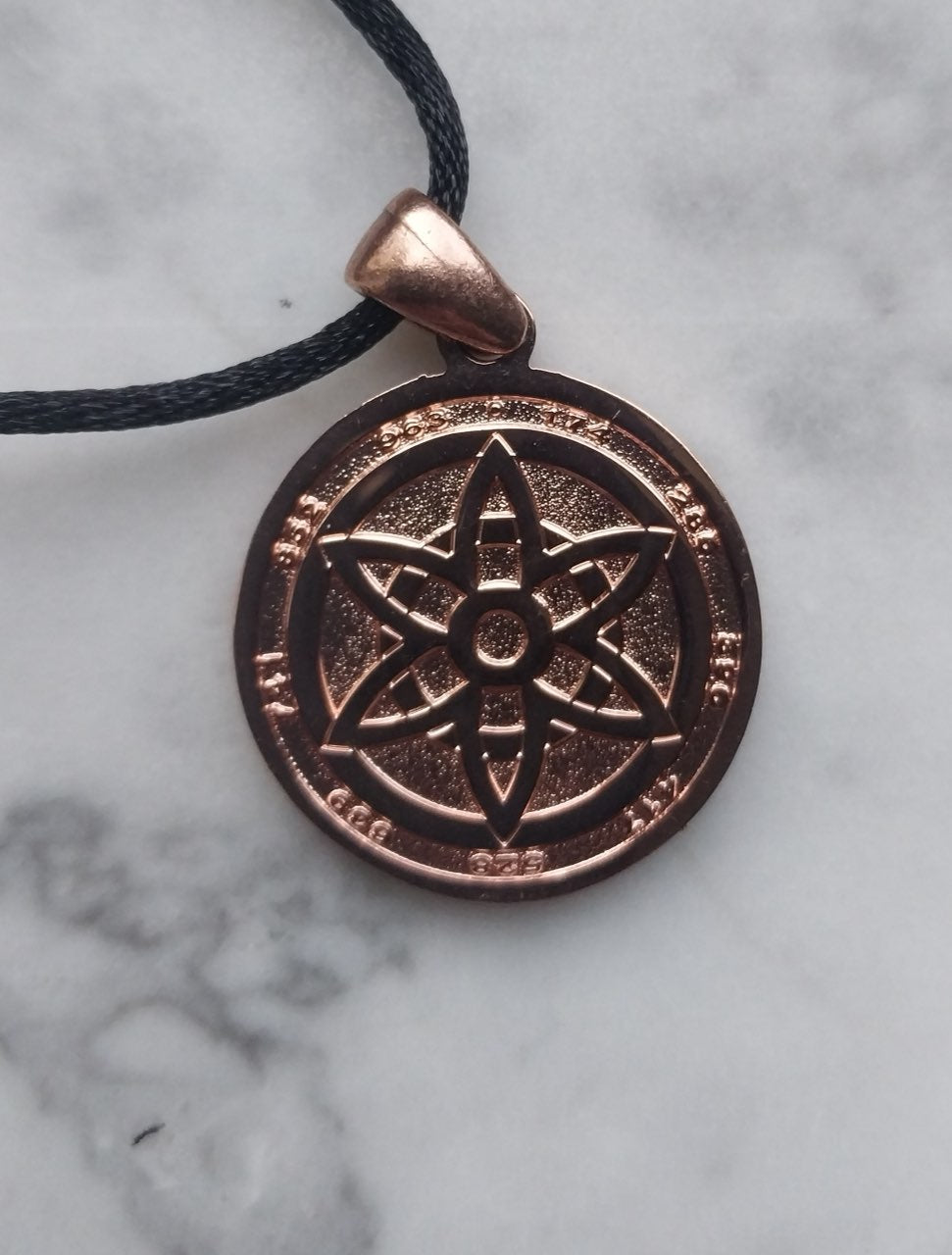 Engraved around the outer ring of the pendant are traditional Solfeggio frequency values, historically associated with harmonic order, biological regulation, and emotional balance.